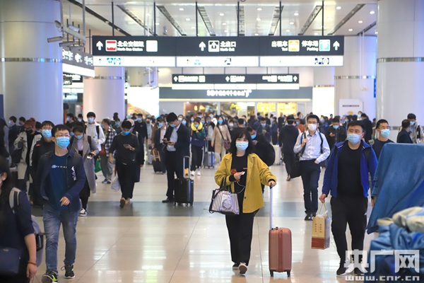 8日晚間北京迎來返京旅客客流高峰(央廣網(wǎng)記者 張佳琪 攝)