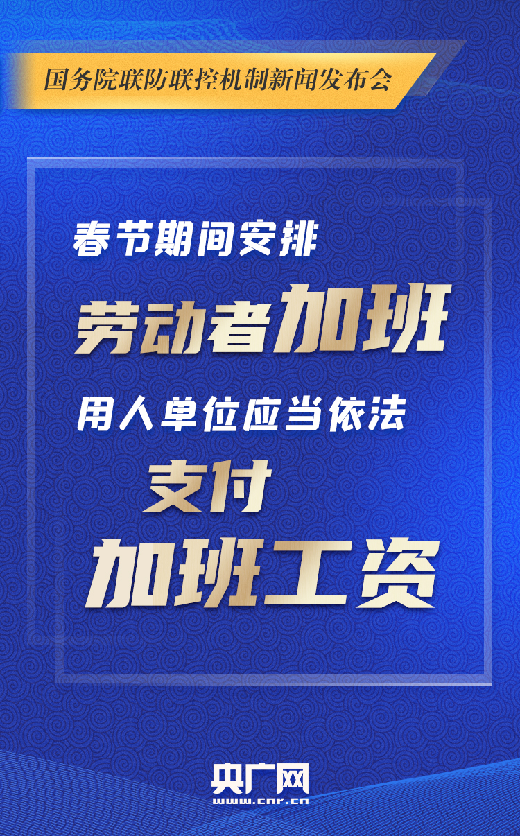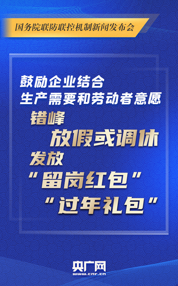 27日,國務院聯(lián)防聯(lián)控機制舉行“就地過年服務保障工作”發(fā)布會,指出各地要合理有序引導人民群眾就地過年,堅決不允許“一刀切”;在春節(jié)期間安排勞動者加班的,用人單位應當依法支付加班工資;增加網(wǎng)絡、電視、廣播等文化體育節(jié)目供應,鼓勵提供免費流量、網(wǎng)絡視頻APP限時免費電影放映等線上服務……更多要點,戳圖查看!