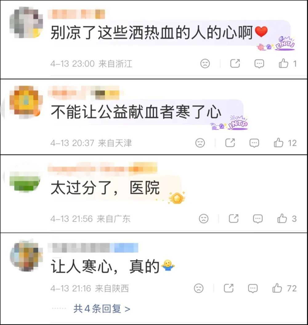 有網(wǎng)友說(shuō):不能讓獻(xiàn)血者寒了心;