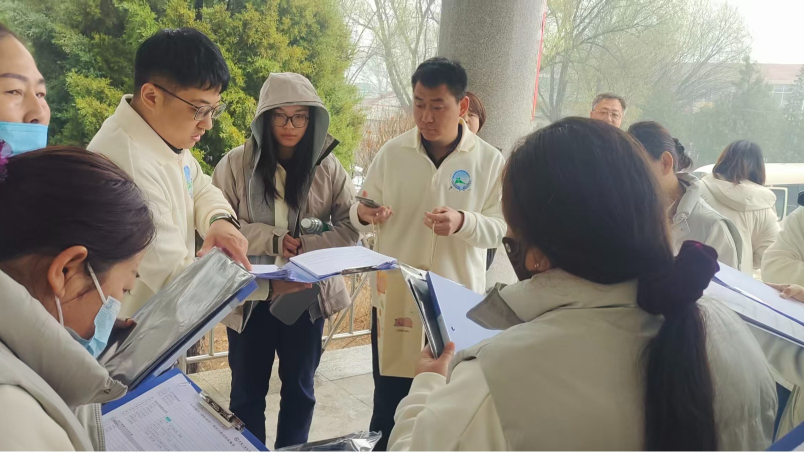 志愿者出發(fā)前在分發(fā)問卷(央廣網(wǎng)發(fā) 中國人權(quán)發(fā)展基金會(huì)供圖)