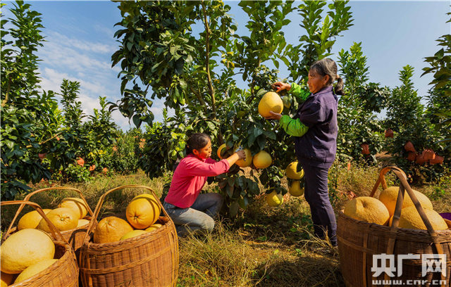 果農(nóng)采摘柚子(通訊員拍攝)