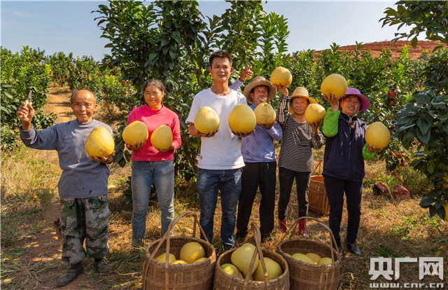 央廣網(wǎng)永新11月20日消息(記者胡斐 通訊員朱國(guó)朝、周亞茂、陳春久)初冬時(shí)節(jié),蜜柚飄香。江西省永新縣象形鄉(xiāng)高田村扶貧基地千畝蜜柚已經(jīng)成熟,滿山柚林掛滿了金黃色的柚子,果農(nóng)抓住晴好天氣加緊采摘、搬運(yùn)入庫(kù)、分揀裝箱,供應(yīng)市場(chǎng)。今年該基地柚子產(chǎn)量將達(dá)60萬斤,又是一個(gè)豐收年。據(jù)悉,該基地吸收238戶貧困戶入股分紅,戶均增收2000余元。