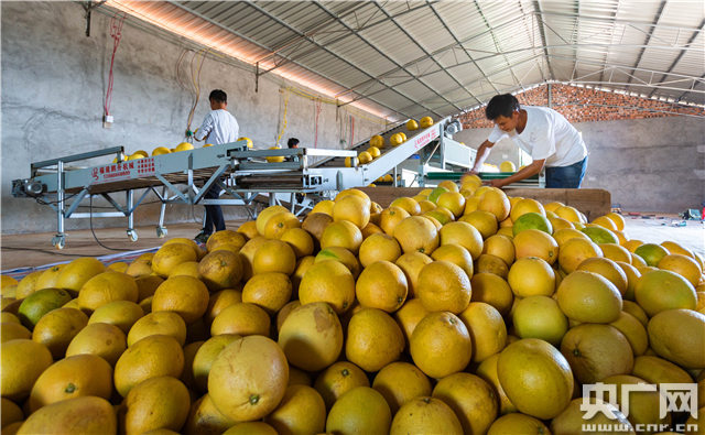 果農(nóng)正在分揀柚子(通訊員拍攝)