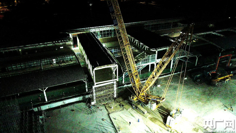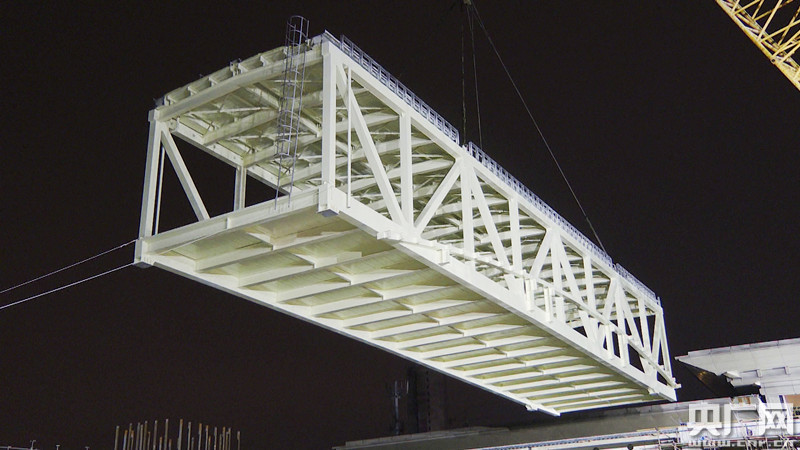 天橋吊裝到位(央廣網(wǎng)發(fā) 蔣榮良 攝)