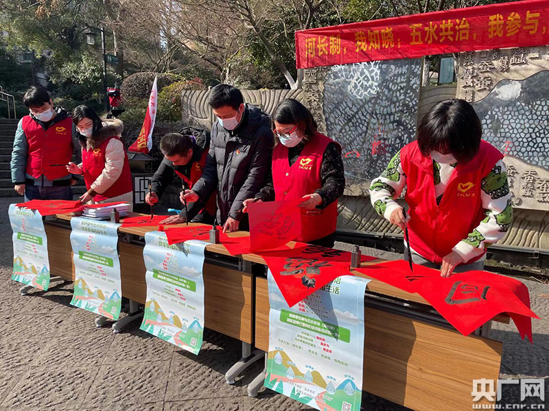活動現(xiàn)場還開展了迎新寫福字和五水共治宣傳,治水辦、街道工作人員準(zhǔn)備了筆墨紙硯,親筆書寫福字送到每一位師傅手中,祝愿他們在新的一年工作順利、平安喜樂。