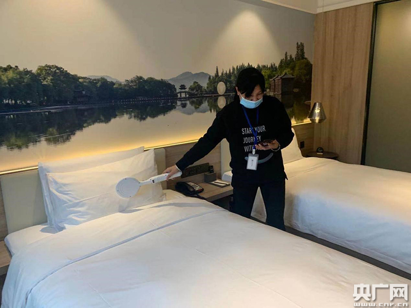 保潔人員用手持式RFID讀卡器進(jìn)行二次查房(央廣網(wǎng)發(fā) 下城區(qū)衛(wèi)生健康局供圖)