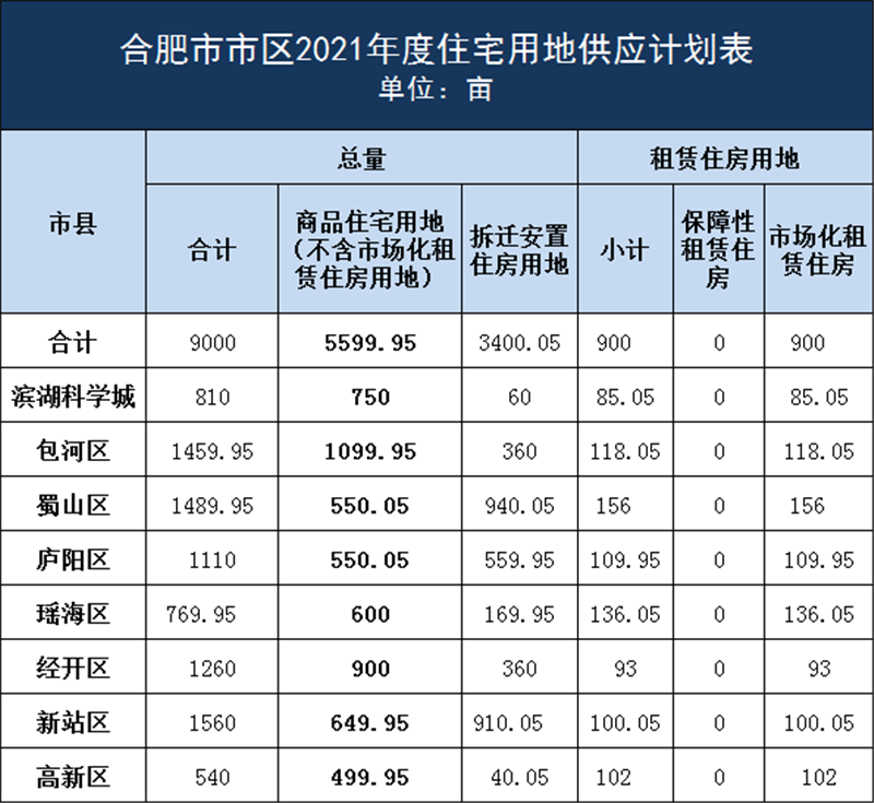 記者注意到,合肥市已經(jīng)提前開始增加居住用地供應(yīng)“行動(dòng)”。從3月30日合肥市自然資源和規(guī)劃局印發(fā)的《合肥市2021年度國(guó)有建設(shè)用地供應(yīng)計(jì)劃(市本級(jí))》中可以看到,濱湖2021年預(yù)計(jì)供應(yīng)750畝居住地,數(shù)量之多僅次于包河、經(jīng)開,排合肥8區(qū)中的第三位。而2020年濱湖供應(yīng)的地塊中,純居住用地僅178.88畝?梢姡2021年的供地是2020年的四倍多。如果按照容積率2.0,一套房子的面積為100㎡來計(jì)算的話,濱湖區(qū)將為區(qū)域提供10000套房源。