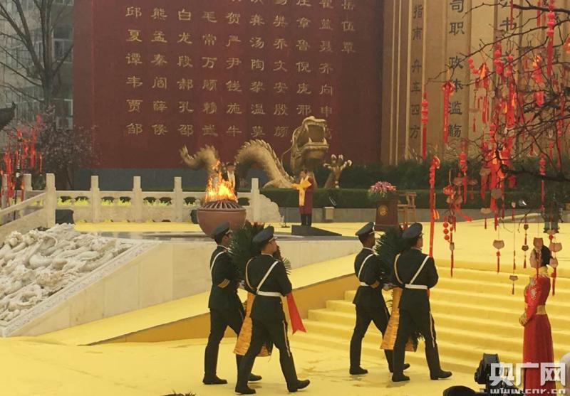 丁酉年黃帝故里拜祖大典30日上午在新鄭黃帝故里舉行 上午9時許,嘉賓們步入黃帝故里姓氏廣場。中央電視臺綜合頻道、中文國際頻道、新聞頻道分別對拜祖大典進行宣傳報道,共有100余家境內(nèi)外媒體采訪大典盛況。 姓氏廣場上,由少林武術(shù)專修學院200余名學生舞動中華民族圖騰崇拜和精神象征的巨龍,鄭州城軌交通學校700余名學生手持不同姓氏旗幟,組成大氣磅礴的中華姓氏旗陣,突出根親文化,歡迎五湖四海龍的傳人回家拜祖。表演結(jié)束后,嘉賓們懷著崇敬的心情,緩緩步入拜祖大典主會場。 9時45分,拜祖大典主司儀、中華全國臺灣同胞聯(lián)誼會黨組書記、副會長蘇輝女士宣布丁酉年黃帝故里拜祖大典正式開始。全場肅立,21響盛世禮炮依次響起,聲震云天。 -