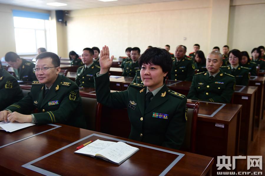 張燕兵向新兵講述十九大精神 央廣網(wǎng)長(zhǎng)春11月10日消息(記者于中濤 通訊員趙建龍 許航 孫罡)黨的十九大報(bào)告中提出,走中國(guó)特色強(qiáng)軍之路,建設(shè)現(xiàn)代化國(guó)防,實(shí)現(xiàn)這一目標(biāo),對(duì)于我們新兵來(lái)說(shuō),就是要練就過(guò)硬本領(lǐng),聽(tīng)黨指揮,邁好軍旅第一步!近日,十九大代表、吉林省軍區(qū)女干部張燕兵來(lái)到吉林省公安邊防總隊(duì)訓(xùn)練基地新兵連,為200余名官兵宣講十九大精神,針對(duì)新兵提出的問(wèn)題,她耐心解答! 宣講期間,張燕兵同志展示了其在十九大會(huì)議期間的系列照片,從一名軍人的角度,與官兵們分享了參加十九大盛會(huì)的真切感受,并圍繞“堅(jiān)持走中國(guó)特色強(qiáng)軍之路、全面推進(jìn)國(guó)防和軍隊(duì)現(xiàn)代化”等方面,從不同角度、不同側(cè)重點(diǎn),深入淺出的闡述了十九大精神的豐富內(nèi)涵。講座語(yǔ)言生動(dòng)活潑,內(nèi)容通俗易懂,引起了官兵的思想共鳴,贏得了在場(chǎng)所有人的熱烈掌聲。宣講結(jié)束后,官兵們爭(zhēng)著與張燕兵握手,熱情洋溢的新兵還搶著請(qǐng)她留言。 -