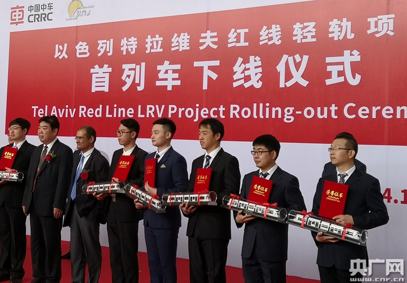 中車長客股份公司為以色列特拉維夫紅線輕軌項目研制的首列車在長春下線。(央廣網(wǎng)記者 劉源源 攝)