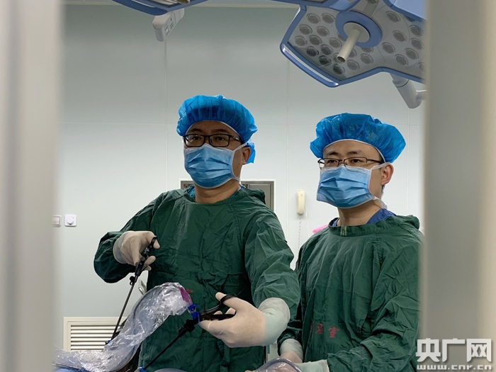 吳向未(左)正在主刀一臺(tái)肝部手術(shù)(央廣網(wǎng)發(fā) 王天浩 攝)