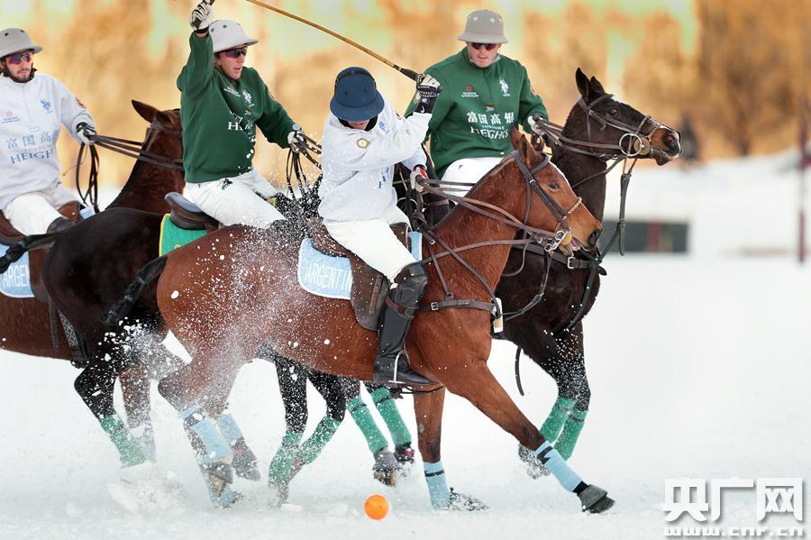 第六屆天津富國高銀雪地馬球世界杯開賽(央廣網(wǎng)記者 賈立梁 攝) 央廣網(wǎng)天津1月26日消息(記者賈立梁)第六屆天津富國高銀雪地馬球世界杯賽日前在天津環(huán)亞馬球場落下帷幕。經(jīng)過激烈的角逐,最終阿根廷隊、中國香港隊、南非隊分獲冠、亞、季軍,英格蘭隊獲得第四名。 雪地馬球運動起源于瑞士,其發(fā)展歷史可以追溯到1985年。這場世界最大規(guī)模的雪地馬球賽事作為國際馬球界的年度盛事之一,已逐漸成為中國馬球運動發(fā)展的風向標。雪地馬球比賽場地相比夏天的草地馬球面積稍小,每隊人數(shù)也由四名球手減少為三名球手。馬球曾經(jīng)作為正式項目進入奧運會,目前在全世界多個國家和地區(qū)廣泛開展,世界各地的男女球手都可以參加此項運動。球員可以根據(jù)自身級別參加不同級別的馬球賽事。 -
