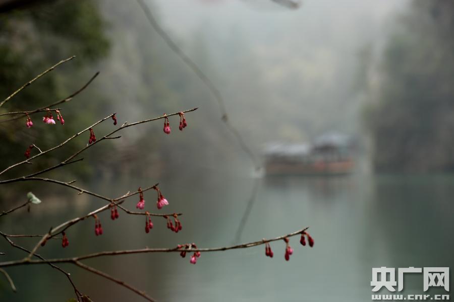 立春后,湖南張家界寶峰湖風(fēng)景區(qū)櫻花、映山紅次第開放,爭奇斗艷,與碧綠的湖水交相輝映,船行其間宛如一幅春色畫卷 央廣網(wǎng)張家界2月7日消息(記者傅蕾 通訊員吳勇兵)立春后,湖南張家界寶峰湖風(fēng)景區(qū)櫻花、映山紅次第開放,爭奇斗艷,與碧綠的湖水交相輝映,船行其間宛如一幅春色畫卷。 -