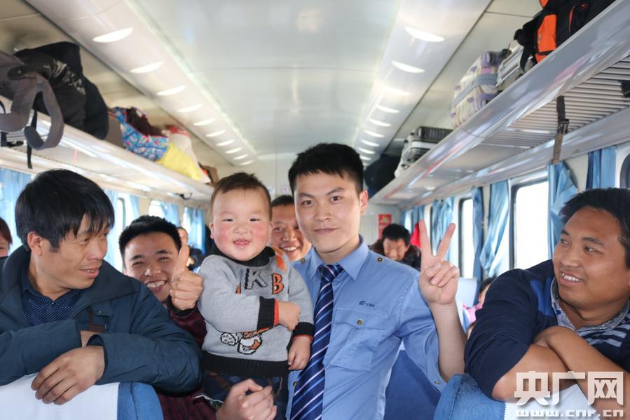 “春運之星”王開羽與旅客共同合影留念(莫然 攝) -