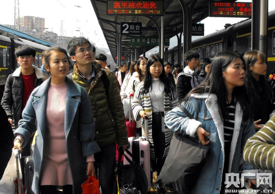 貴州凱里火車站務工流與學生流匯成春運后高峰