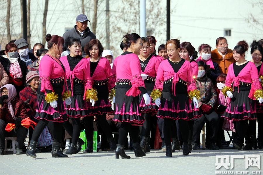 開(kāi)場(chǎng)(央廣網(wǎng)記者郭長(zhǎng)江 攝) 央廣網(wǎng)固原3月10日消息(記者郭長(zhǎng)江 許新霞 寧夏新聞廣播師杰)都說(shuō)寧夏固原的鄉(xiāng)村文化大院活動(dòng)搞得紅紅火火,百聞?wù)娴牟蝗缫灰?jiàn)。8日上午,到原州區(qū)采訪,碰巧趕上了彭堡鎮(zhèn)廣場(chǎng)上十里八村的婆姨們進(jìn)行“廣場(chǎng)舞大比拼”,慶賀節(jié)日。別看這些平時(shí)鉆溫棚、下地干活、搞副業(yè)還兼顧著照顧老人娃娃的婆姨們,跳起廣場(chǎng)舞來(lái),絲毫不比咱城里的差。 紅嘴唇、高跟鞋、穿著各村不一樣的色彩艷麗的自備演出服,很是有模有樣。隨著音樂(lè)擰一擰、扭一扭,那樂(lè)感毫不含糊。動(dòng)作雖然談不上整齊劃一,那一招一式可也是“鐵板上釘釘——有板有眼”,不一會(huì)就吸引了幾百號(hào)人駐足圍觀。 石碑灣村的一位自稱姓劉的婆姨告訴記者:“收入好了,日子也富了,開(kāi)始有了新追求了。晚上回到家,撂下飯碗,和村里的姐妹們跳起廣場(chǎng)舞來(lái)很爽快,從來(lái)不需要任何人上門(mén)動(dòng)員。有時(shí)候,高興起來(lái)姐妹們還在田間地頭上扭一扭,解解乏吶!笨磥(lái),這些婆姨確實(shí)比村里的爺們想得開(kāi)。 同行的原州區(qū)宣傳部副部長(zhǎng)郝彥暉頗有些自信地說(shuō):“這在前幾年,想都不敢想。日子好了,文化也自然而然形成了。這都是沾‘文化’扶貧的光。市、區(qū)兩級(jí)宣傳文化部門(mén)還給有規(guī)模的文化大院配備了些簡(jiǎn)單的音響設(shè)備。這些婆姨們心里明白著吶!” -
