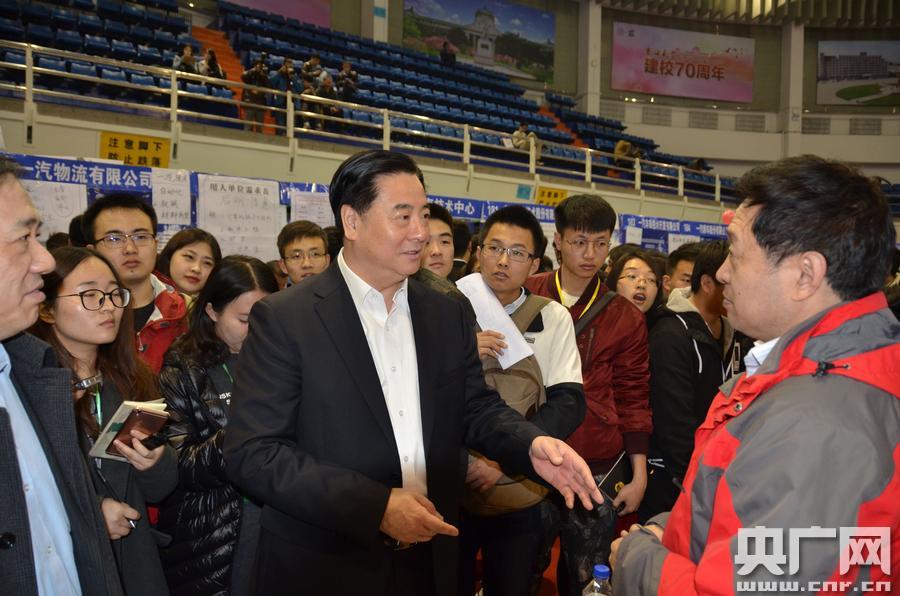 李元元校長(zhǎng)與用人單位洽談(央廣網(wǎng)記者 于中濤 攝)