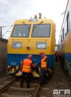 西南地區(qū)首臺(tái)接觸網(wǎng)綜合檢修列配屬成都供電段(何躍光 攝) -