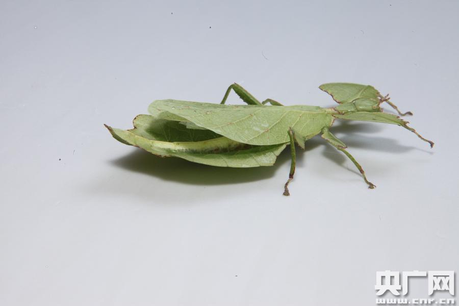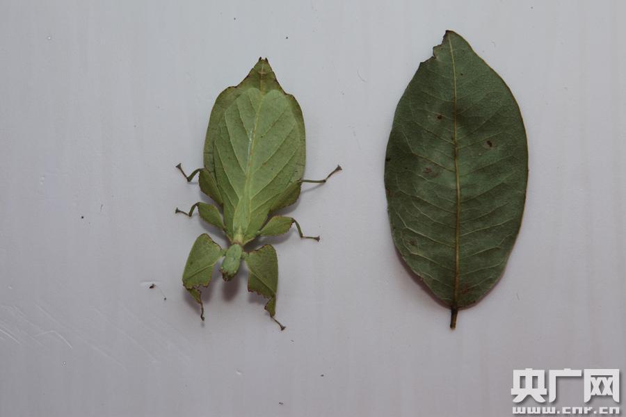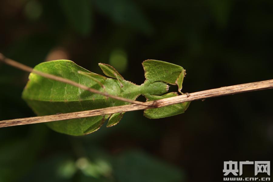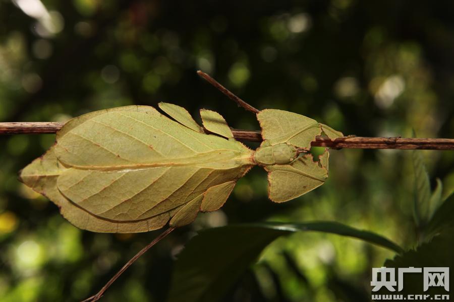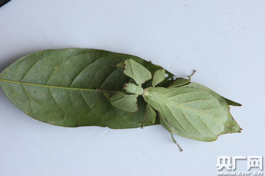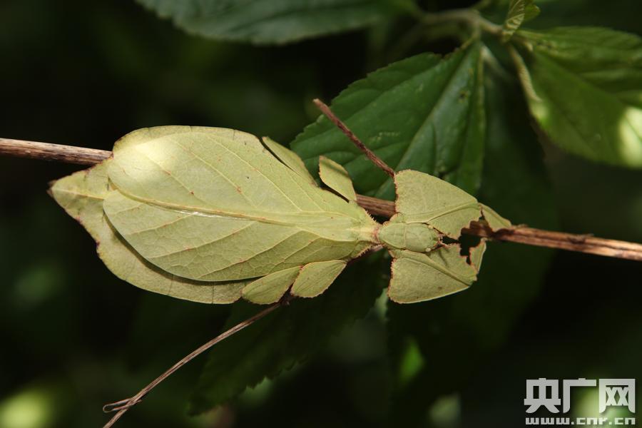 云南普洱驚現(xiàn)“會(huì)走路的樹(shù)葉”專家鑒定為罕見(jiàn)竹節(jié)蟲(chóng)(圖片由普洱國(guó)家公園提供) 央廣網(wǎng)普洱5月24日消息(記者李健飛 通訊員陶平 毛雪蘭)5月24日,一只長(zhǎng)相獨(dú)特,外形極度酷似樹(shù)葉的蟲(chóng)子出現(xiàn)在云南普洱國(guó)家公園附近。據(jù)當(dāng)時(shí)正在度假的目擊者蔣先生介紹,當(dāng)時(shí)只以為是片綠色“樹(shù)葉”掉落在木條板上。后來(lái)發(fā)現(xiàn),它竟然還有頭有腳,枝節(jié)分明,在地上來(lái)回爬動(dòng)。細(xì)看才發(fā)現(xiàn)這近10公分長(zhǎng)、5公分寬的蟲(chóng)體上面有著非常清晰的“葉片脈絡(luò)”,正面看上去像樹(shù)葉的灰白色“背面”,蟲(chóng)體翻轉(zhuǎn)時(shí)看到的綠色又不一樣,似樹(shù)葉的翠綠“正面”。單看蟲(chóng)身部分幾乎與綠樹(shù)葉無(wú)異。而且這只“葉子蟲(chóng)”的翅部是由上下兩片“葉子”組成,在下的樹(shù)葉脈絡(luò)明顯更粗壯許多,是蟲(chóng)的身子部分。這只蟲(chóng)子的“手腳”也極為獨(dú)特,酷似被殘食的不規(guī)則葉片,與平常見(jiàn)到的蟲(chóng)類大不相同。 -