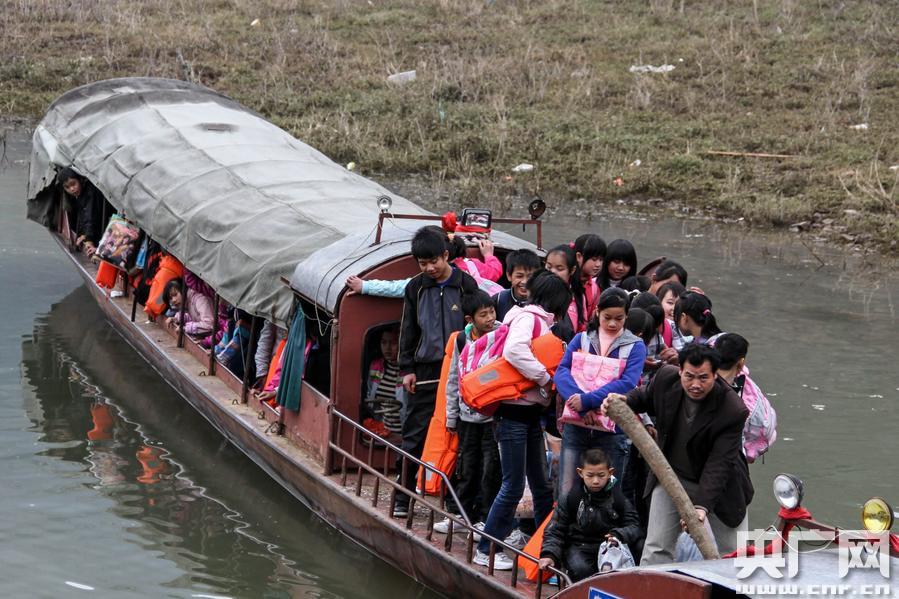 每周五,西林縣八大河希望學(xué)校的孩子們排隊(duì)乘坐免費(fèi)“校船”回家 -