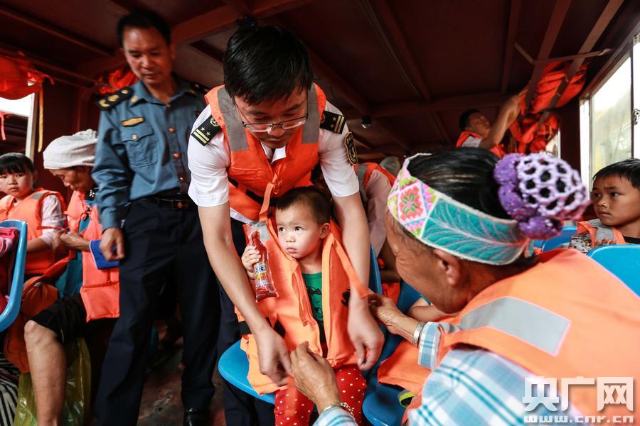 百色海事局隆林海事處工作人員幫孩子穿救生衣 -