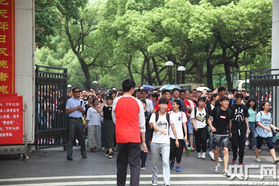 第一場語文考試結(jié)束后考生走出長沙市第一中學考點