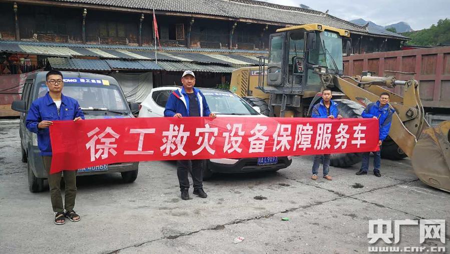 正在災(zāi)區(qū)中心現(xiàn)場作業(yè)的徐工挖掘機 徐工的救援集結(jié)令也獲得當(dāng)?shù)赜脩舴e極響應(yīng)與支持,其中茂縣用戶趙如良是當(dāng)?shù)攸h員代表,他不懼可能再次發(fā)生泥石流風(fēng)險第一時間進入災(zāi)區(qū)力腹地,支援搶險,并安排機手祝桑建及宋起正立刻停止沙場工作,駕駛兩輛徐工LW500KN裝載機前往救災(zāi)現(xiàn)場,于24日14:12分到達茂縣應(yīng)急搶險點。他表示讓徐工的領(lǐng)導(dǎo)放心,作為徐工的客戶會和徐工一起,全力以赴做好救災(zāi)工作。成都歐博能公司接到指令后立刻組織兩輛服務(wù)車,三名服務(wù)人員,帶好配件于下午3:00出發(fā)前往一線,服務(wù)人員趙毅放棄大專結(jié)業(yè)考試,主動跟隊前往一線。 -