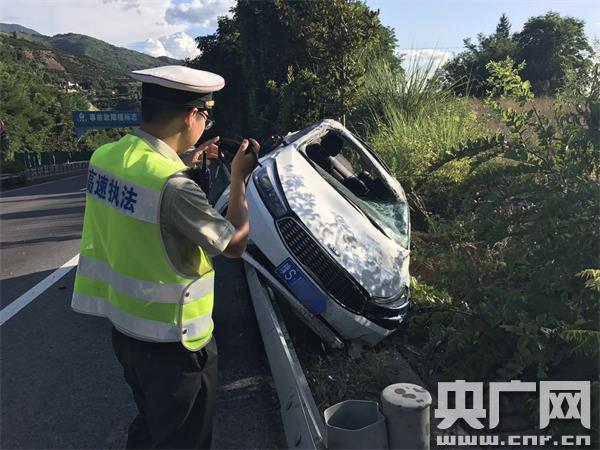 河南男子高速公路“打望”釀事故 車輛嚴重受損(央廣網(wǎng)發(fā) 樂柏 攝) 央廣網(wǎng)重慶8月4日消息(記者劉湛 通訊員樂柏)林先生帶著妻子和孩子于8月2日一早開車從河南信陽出發(fā),送孩子到四川成都讀書。對于生活在北方平原地區(qū)的林先生一家來說,見慣了一覽無遺的平原,當(dāng)車子行駛進入渝東北地區(qū)時,高聳的大山,奇幻的云彩都深深吸引著他們的目光。 下午17時許,車子經(jīng)滬蓉高速剛剛駛出摩天嶺隧道,林先生一家就被前方的夕陽美景所吸引,家人還拿出手機拍照留念。然而,對于正在開車的林先生來說,一場噩運正隱藏在這美麗的晚霞之中向他和他的家人襲來。車輛行駛至1336KM路段,該路段屬于一段長下坡的尾端,且屬于彎道路面,正在欣賞美景的林先生直接將車子撞上了高速公路和避險車道之間護欄端頭,車子在撞碎防撞桶后飛起,在空中翻滾后逆向落在30多米的遠的護欄上。最終造成林先生頭部受輕傷,車輛嚴重受損幾近報廢,所幸的是他自己和家人都沒有受到太大的傷害。 重慶市交通行政執(zhí)法總隊高速公路第二支隊四大隊執(zhí)法人員在接到過路駕駛員報警后,立即前往現(xiàn)場進行了處置,將林先生一家送到了重慶巫山縣120急救中心進行了檢查,并對事故現(xiàn)場進行了勘查。目前,事故正在進一步調(diào)查之中。