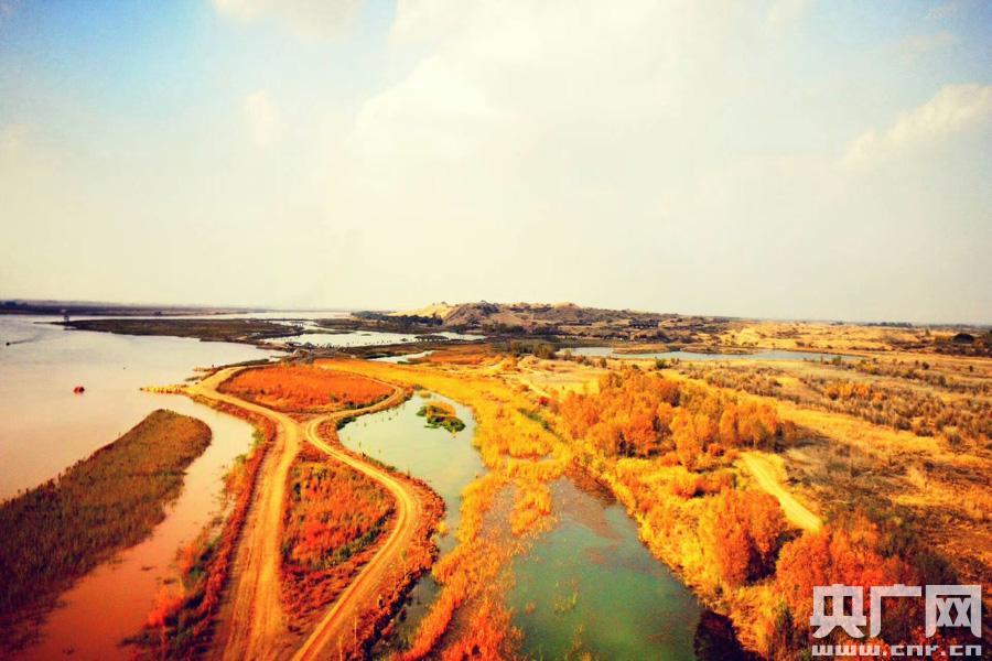 長(zhǎng)河落日?qǐng)A 央廣網(wǎng)銀川11月13日消息(記者廉軍)北方深秋天氣漸冷,秋意蕭條寂寥。但記者卻從深秋發(fā)現(xiàn)了不一樣的風(fēng)味和美意,秋高氣爽的寧夏黃河金岸晚秋另有風(fēng)韻。真可謂:晴空雁鶴上云天,引得詩(shī)情到霄爽。 黃河深秋不寂寥,黃沙古渡有異彩。這里萬(wàn)紫千紅秋正濃,霜后大漠秋花色更深,紅葉椿紅得發(fā)紫,紅彤彤的爬山虎在河水的映襯下更顯靈動(dòng),金枝白蠟黃中帶綠,頗有層次;濕地呈現(xiàn)出五彩、荻花飛蕩、金色田園安靜,候鳥(niǎo)回歸、金柳倒影等秋景漸入佳境;晚霞時(shí)分長(zhǎng)河落日最是動(dòng)人,如果運(yùn)氣好,還可碰上霞鶩齊飛、水天一色的絕景。這些都勾畫出一道北方深秋風(fēng)景線。 可以說(shuō)黃葉飄零是別離和不舍,也是生命的輪回,但記者更欣賞秋高氣爽,沉醉于層林盡染,多彩沉厚。深秋同時(shí)給了一種堅(jiān)強(qiáng)的感覺(jué),秋天是剛強(qiáng),是堅(jiān)持,也是忍耐。秋陽(yáng)杲杲,天高空明,登高觀黃沙擁長(zhǎng)河的塞外奇景,不僅有金秋塞上豐收的喜悅。隨秋風(fēng)林葉紅透,再過(guò)旬日景區(qū)內(nèi)最后一抹紅將送秋去而冬來(lái),長(zhǎng)風(fēng)萬(wàn)里送秋雁,也會(huì)有雁鳴驚寒的悲秋之意:在水一方有佳人,不知誰(shuí)家問(wèn)秋思? -