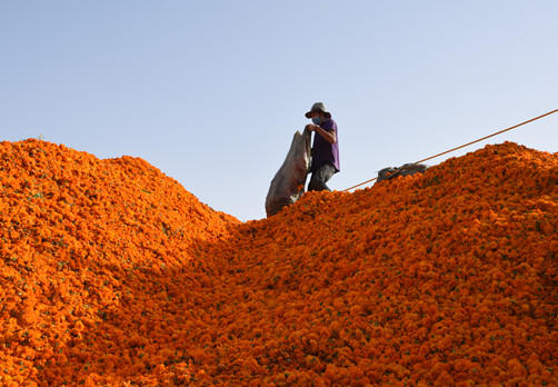 新疆和田迎豐收 萬(wàn)畝萬(wàn)壽菊成村民“致富花”