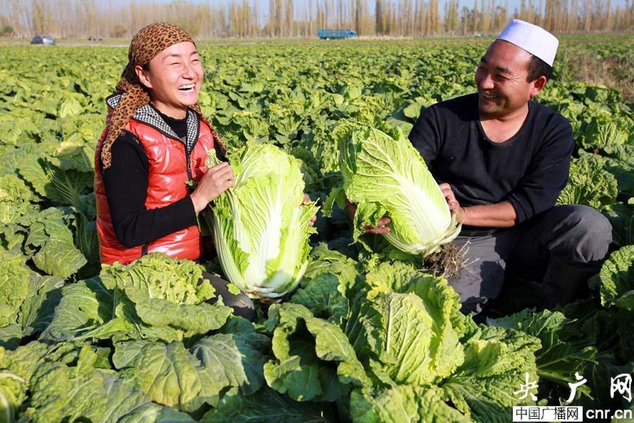 新疆焉耆回族自治縣菜農(nóng)喜上眉梢(央廣網(wǎng)記者 張雷 攝)
