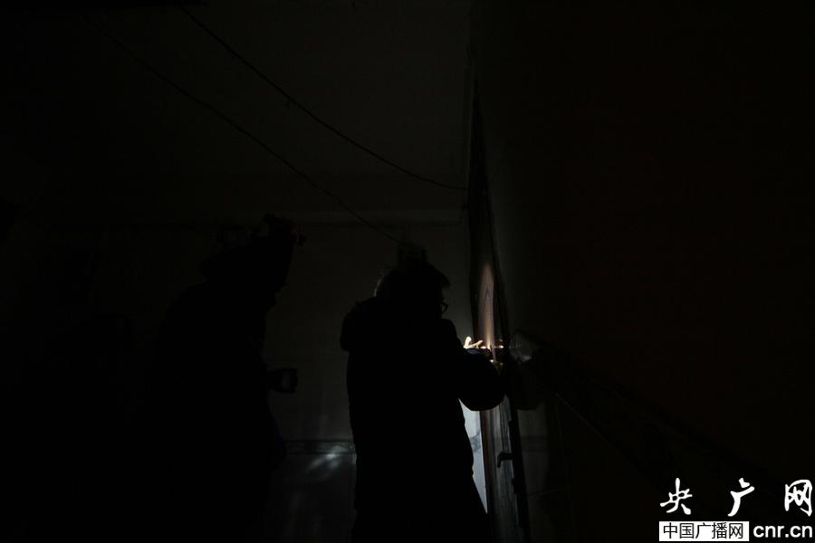 南寧市良慶區(qū)某小區(qū)內(nèi),執(zhí)法人員欲透過魚眼向房內(nèi)窺視。通過此前的踩點,該出租房被列為搜查對象。(央廣網(wǎng)記者 張壘 攝)