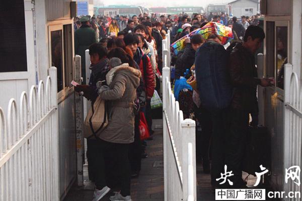 進(jìn)站旅客井然有序(央廣網(wǎng)發(fā) 劉濤攝)