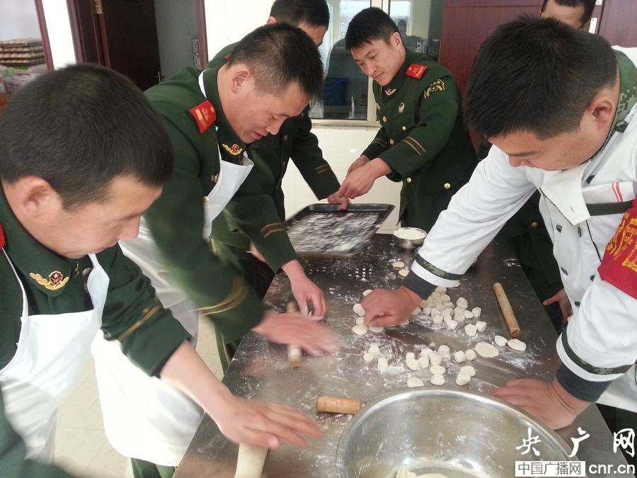 戰(zhàn)士們搟餃子皮(央廣網(wǎng)記者 楊陽 攝)