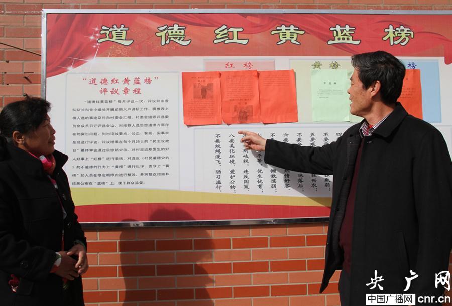 “道德紅黃榜”由各村組村民代表評議,每月張榜一次,紅榜褒揚(yáng)忠孝勤儉、友鄰熱心等先進(jìn)典型,黃榜曝光欠費(fèi)誤工和臟亂差等不文明行為。上紅榜者自豪欣喜,上黃榜者愧疚臉紅,受鞭策改正。