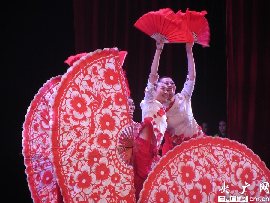 煙臺市選送的舞蹈節(jié)目《舒心的日子扭著過》,舞者的平均年齡在50歲以上。(央廣網(wǎng)記者 劉穎超 攝)