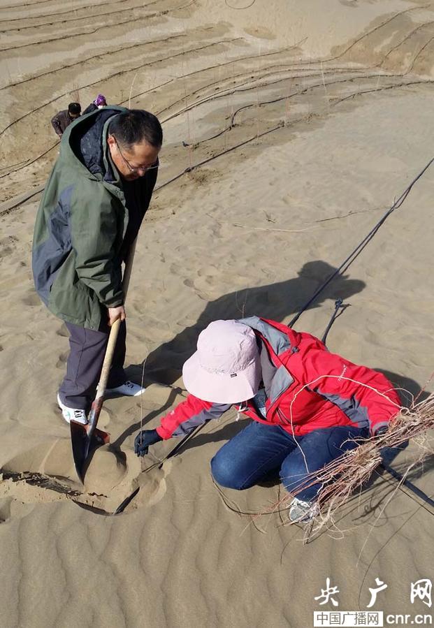 把紅柳種進(jìn)沙漠是干群春季植樹(shù)的自覺(jué)行動(dòng)(央廣網(wǎng)記者 吳卓勝 攝)