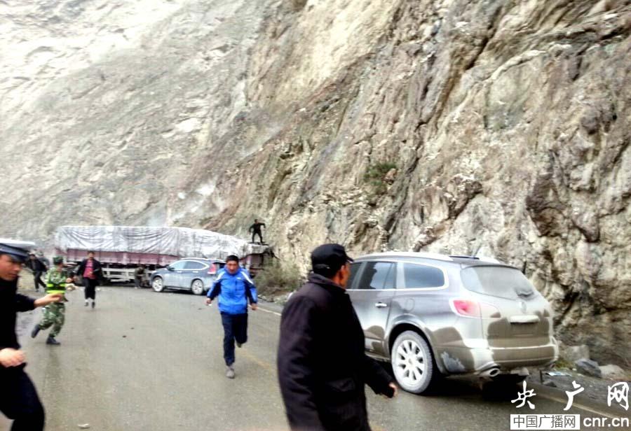 12時45分許,經邊防官兵、路政部門現場觀察分析,并看到落石逐漸停止后,便立即組織道路清理工作,截止13時許,事故路段被清理出一條便道,可供小轎車車輛單向通行。