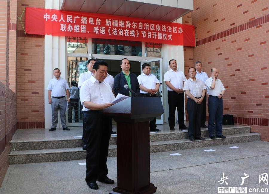 央廣網(wǎng)烏魯木齊7月1日消息(記者吳卓勝 加乘)今天(1日)上午,由新疆維吾爾自治區(qū)依法治區(qū)領(lǐng)導(dǎo)小組辦公室、新疆維吾爾自治區(qū)司法廳和中央人民廣播電臺(tái)新疆民族語言廣播中心合作聯(lián)辦的“法治在線”(維吾爾語)節(jié)目開播儀式在中央人民廣播電臺(tái)新疆民族語言廣播中心舉行。