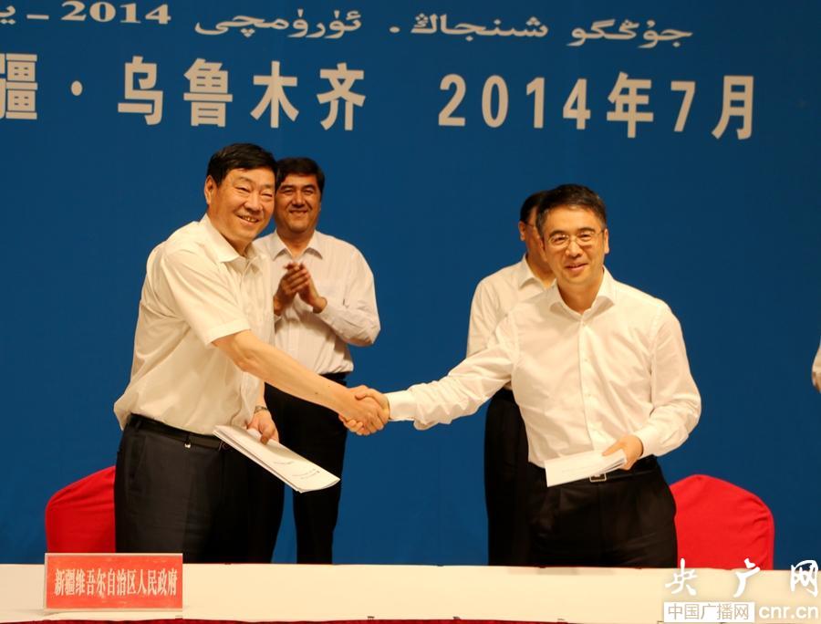 工行與新疆維吾爾自治區(qū)人民政府簽署金融服務(wù)戰(zhàn)略合作協(xié)議(央廣網(wǎng)記者 吳卓勝 攝)