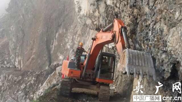 官兵操作大型機(jī)械在懸崖峭壁山開出通道(央廣網(wǎng)發(fā) 皮峰 攝)