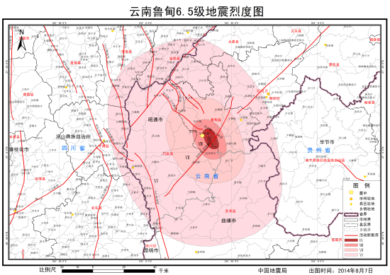中國(guó)地震局正式發(fā)布云南魯?shù)?.5級(jí)地震烈度圖