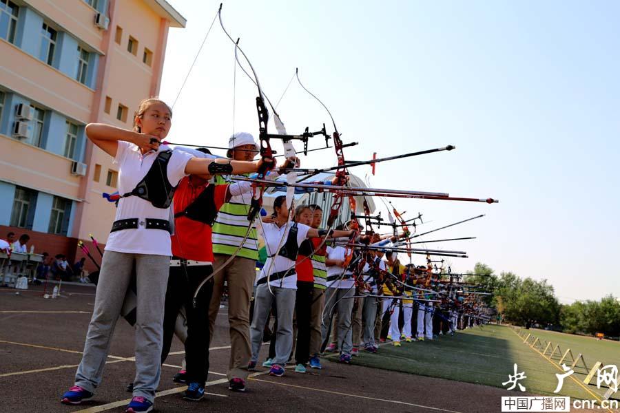 新疆第十三屆運(yùn)動會射箭項目青少年組138名運(yùn)動員同時比賽,場面十分壯觀(央廣網(wǎng)記者 張雷 攝)