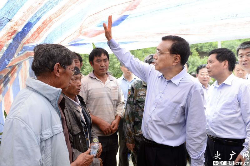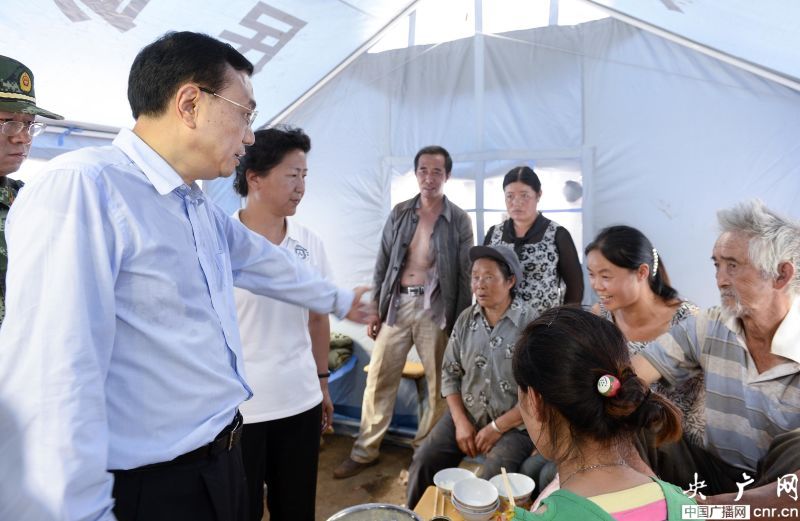 4日下午,李克強來到云南魯甸震震中龍頭山鎮(zhèn)災民臨時安置點,看望受災群眾。