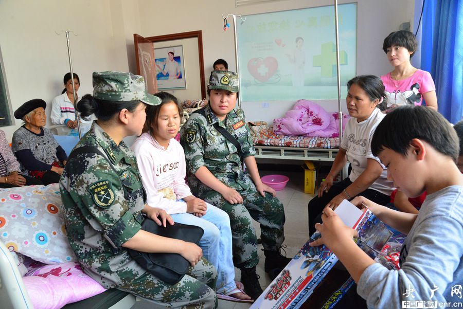 圖為心理服務(wù)分隊隊員薛蓮、吳青在給傷員做心理輔導(dǎo)(央廣網(wǎng)發(fā) 李進 攝)