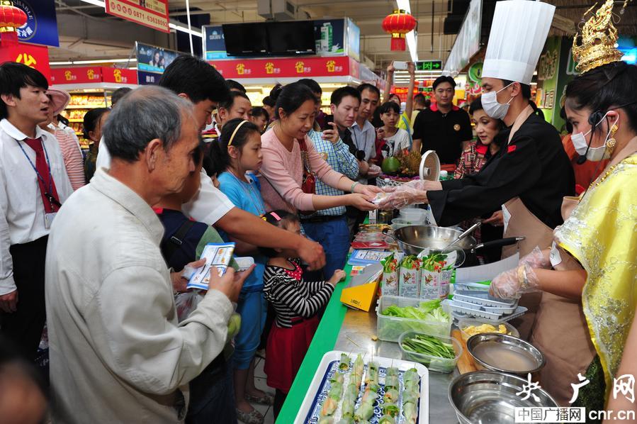 央廣網(wǎng)昆明8月23日消息(記者李健飛)8月22日,由泰王國駐昆明總領(lǐng)事商務(wù)處與昆明家樂福聯(lián)合主辦的2014年 “泰國美食節(jié)”在昆明及曲靖同時開幕。在美食節(jié)上,不僅有來自泰國的水果、香米等商品任消費(fèi)者們挑選,還有泰國大廚巡回演示泰國菜的做法,教市民用日常的材料做出最正宗的泰國菜。