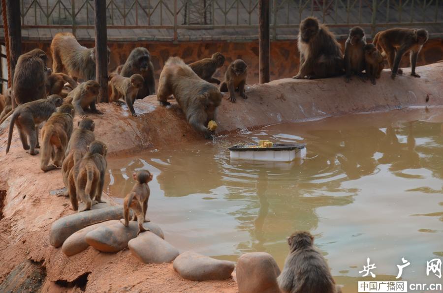 接下來就是猴子撈月了,飼養(yǎng)員首先將小朋友們做的月餅放入猴山水池的托盤里,小猴子們看到了美味的月餅后全部都圍在了水池邊,可是月餅在水池中間,小猴子們都不敢下水,一個個在水池邊摩拳擦掌,急的抓耳撓腮,看著月餅卻吃不到。過了一會,有一只小猴子想到了辦法,它迅速爬上了猴山的跳板,一只手抓著跳板的邊緣,另一只手向下伸的長長的,準備撈水池中央的月餅。可是,跳板離水面好遠,它嘗試了半天也沒有成功,只好躲到一邊繼續(xù)想辦法了。不久,一只膽大的猴子開始行動了。它慢慢的從水池邊小心翼翼的向水中央摸索,走了幾步,它的手可以碰到托盤的邊緣了,其他在水池邊的小猴子看見它要成功了,都興奮的叫了起來。這只膽大的猴子受到了大家的鼓勵,有了很大的信心,一伸手,就將裝月餅的托盤給抓了過來。拿起了一個月餅就跑了。其它的猴子們看到后都一一效仿。不一會,一盤的月餅都被小猴子們搶光了。