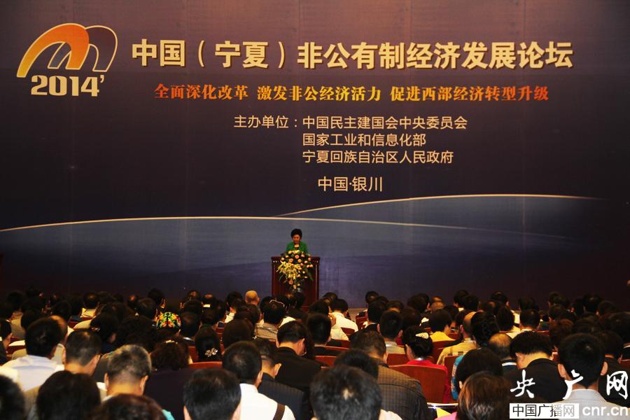 央廣網(wǎng)銀川9月18日消息(記者廉軍)由民建中央、國家工信部和寧夏區(qū)政府聯(lián)合舉辦的“2014中國(寧夏)非公有制經(jīng)濟發(fā)展論壇”今天在銀川隆重舉行。全國人大常委會副委員長、民建中央主席陳昌智出席并致辭。寧夏回族自治區(qū)黨委書記李建華,自治區(qū)主席劉慧,自治區(qū)政協(xié)主席齊同生等領(lǐng)導(dǎo)出席了開幕式。