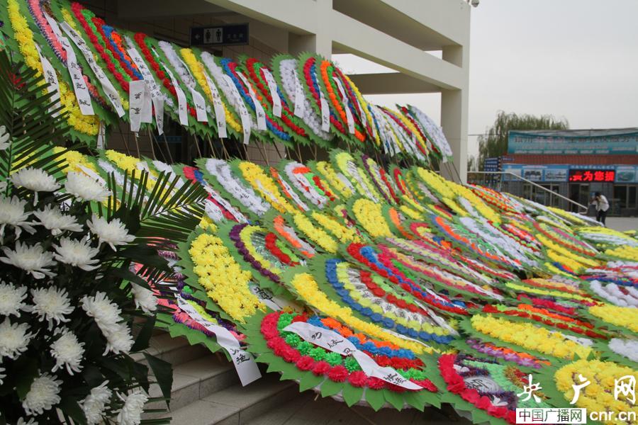 各界送花圈400多個(gè)(央廣網(wǎng)記者 廉軍 攝)