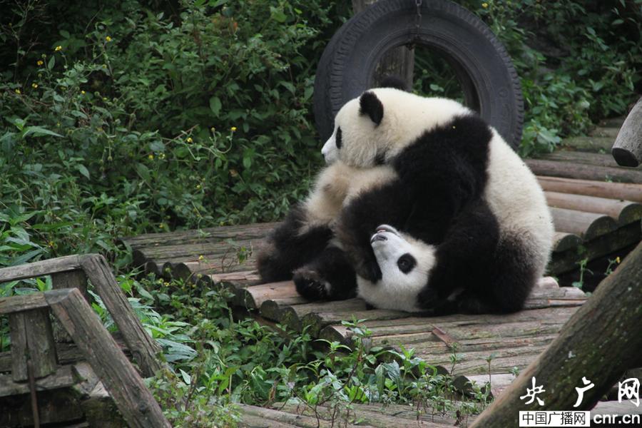 在碧峰峽基地生活的大熊貓(央廣網(wǎng)發(fā) 賈宜超攝)